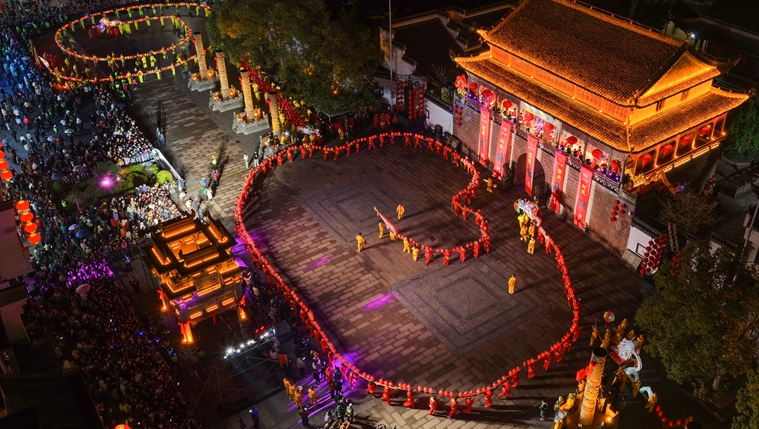 2月28日,在休宁县状元广场,非遗民俗徽州板凳龙在夜色中巡游。农历正月十二,休宁县“福满状元城”舞龙大会在状元广场热闹开演。百米长的非遗民俗徽州板凳龙在街巷间穿梭游动,与钟鼓...