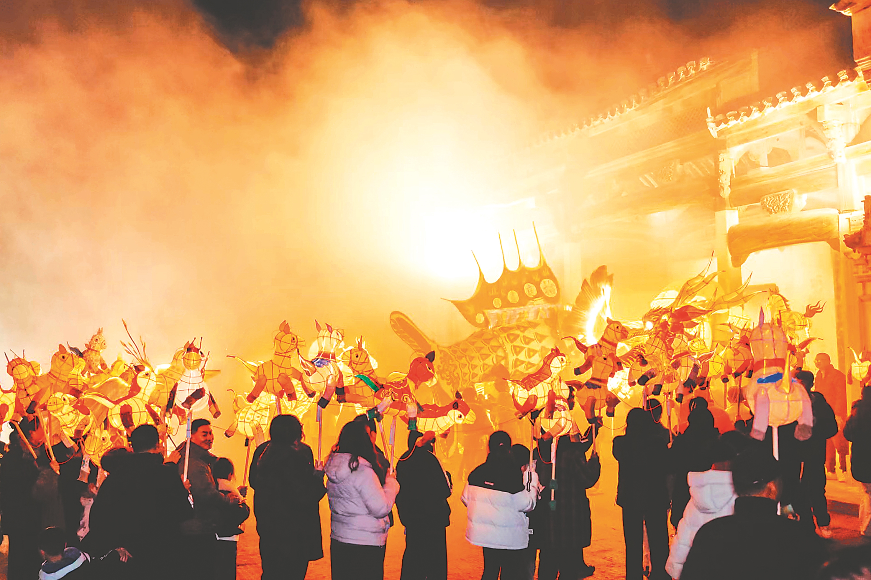 2月23日,黟县碧阳镇石亭村举办“马上有喜”灯彩巡游。龙灯、凤灯、马灯、鱼灯等汇成了一条流动光河,在粉墙黛瓦间蜿蜒流淌。黟县碧阳镇政府供图