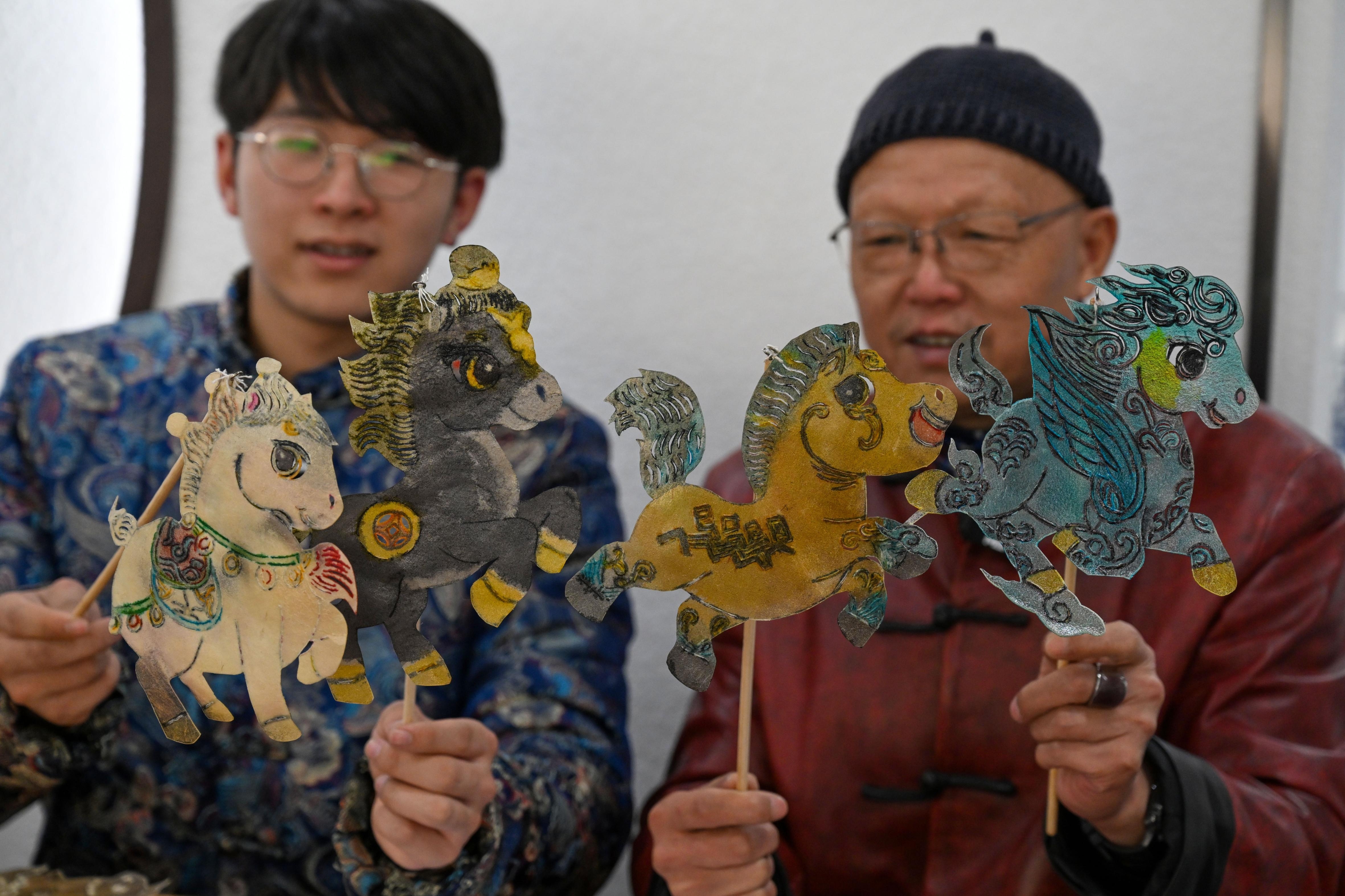 马派皮影戏的影偶皮子厚、色彩艳,做起来十分费功夫。