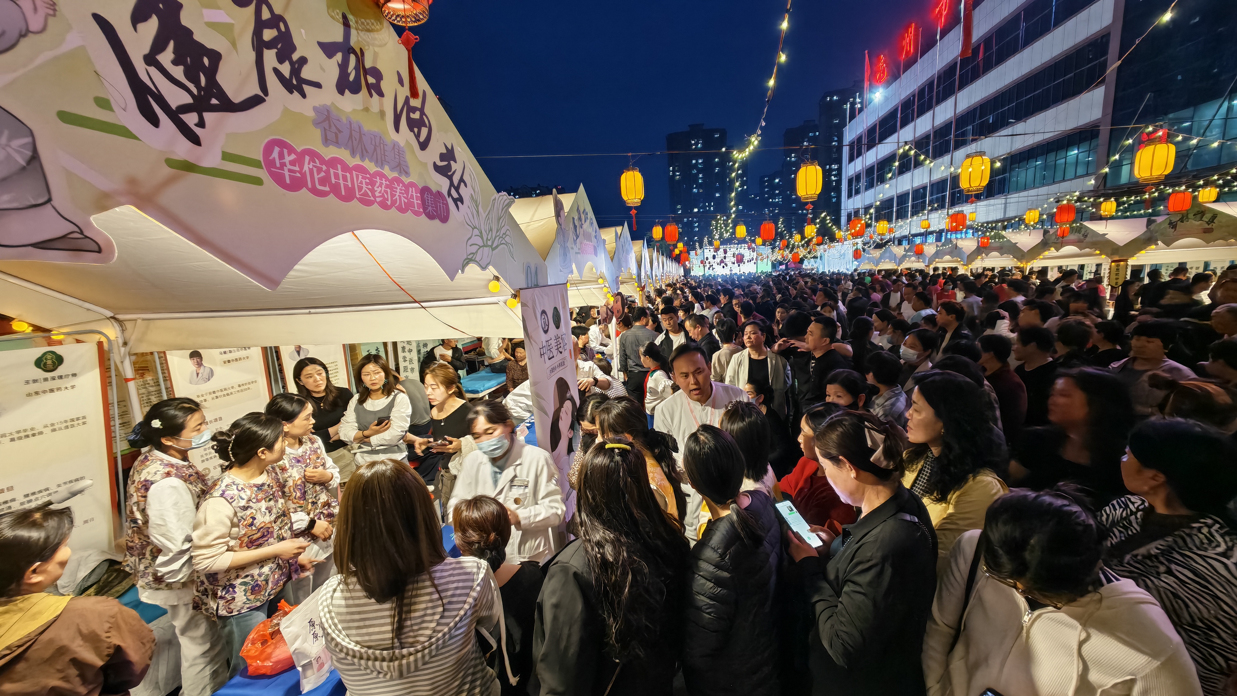 4月18日,亳州市华佗中医院西院区广场,市民在参与“华佗中医药养生集市”上的活动。记者任雷摄
