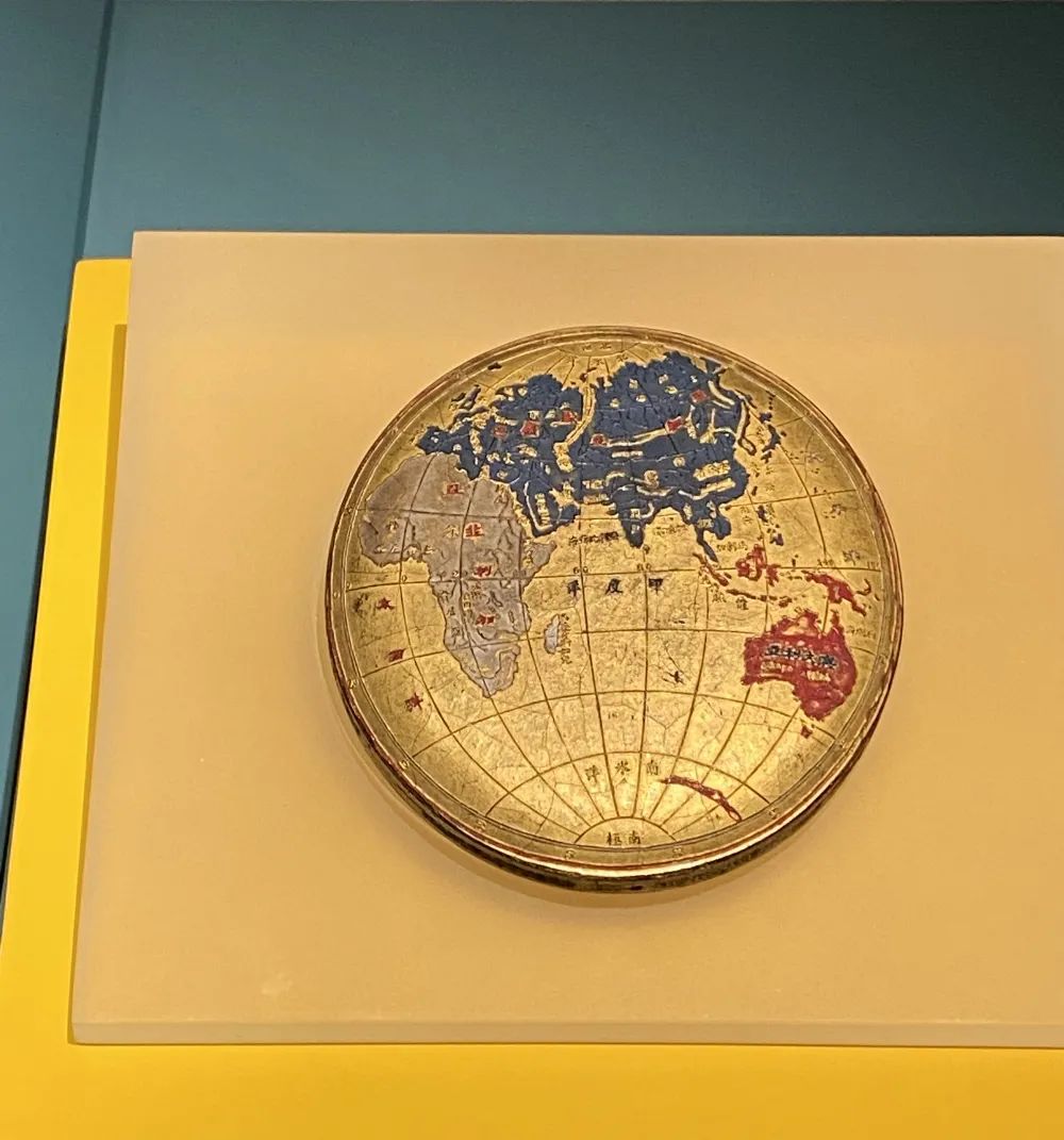 墨表面绘世界地图,绘有东、西半球及各大洲、大洋形状,皆以中文标注,主要经纬线也标注清楚。中国版块还标有安徽省、西藏等字样。此墨边侧阳刻大写英文款识一圈,译文为“首获民国四年(1915)美国巴拿马博览会优等奖纪念,中国安徽休宁胡开文墨店制”。此墨为原模重刻边款制成,为研究徽墨发展及世界地理的重要资料。
