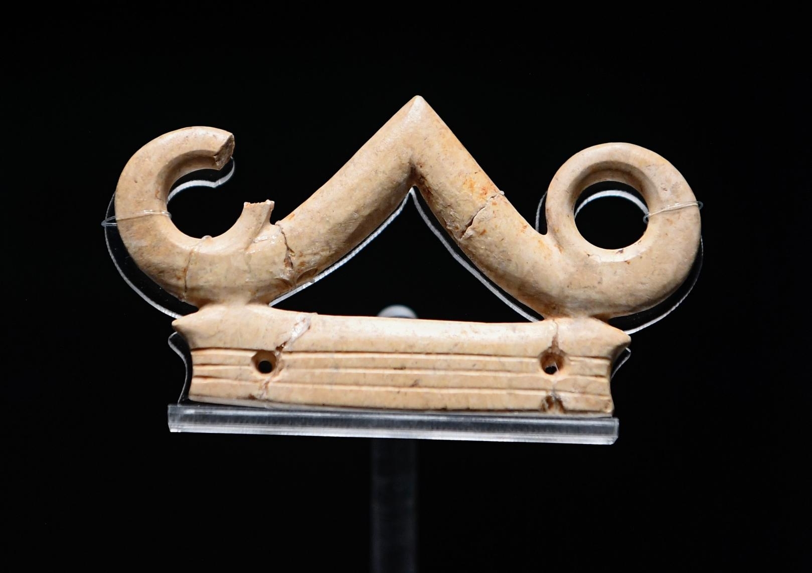凌家滩虎首玉璜。 本报记者 徐旻昊 摄