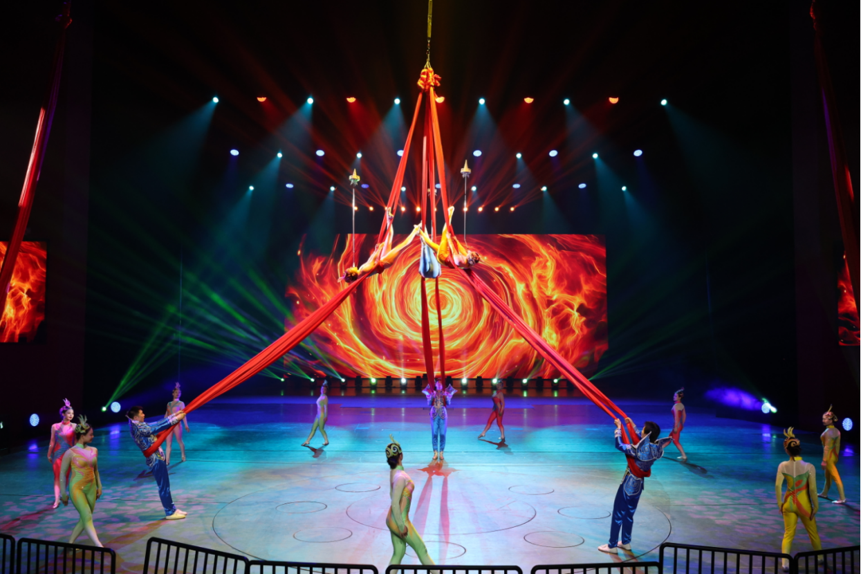 值得一提的是,《百戏欢乐秀》还将传统杂技与新舞台技术相融合,顶碗、空中飞人等经典绝活搭配智能灯光、3D音效等现代灯光舞美,让观众直观感受到传统技艺与现代科技结合的独特魅力。