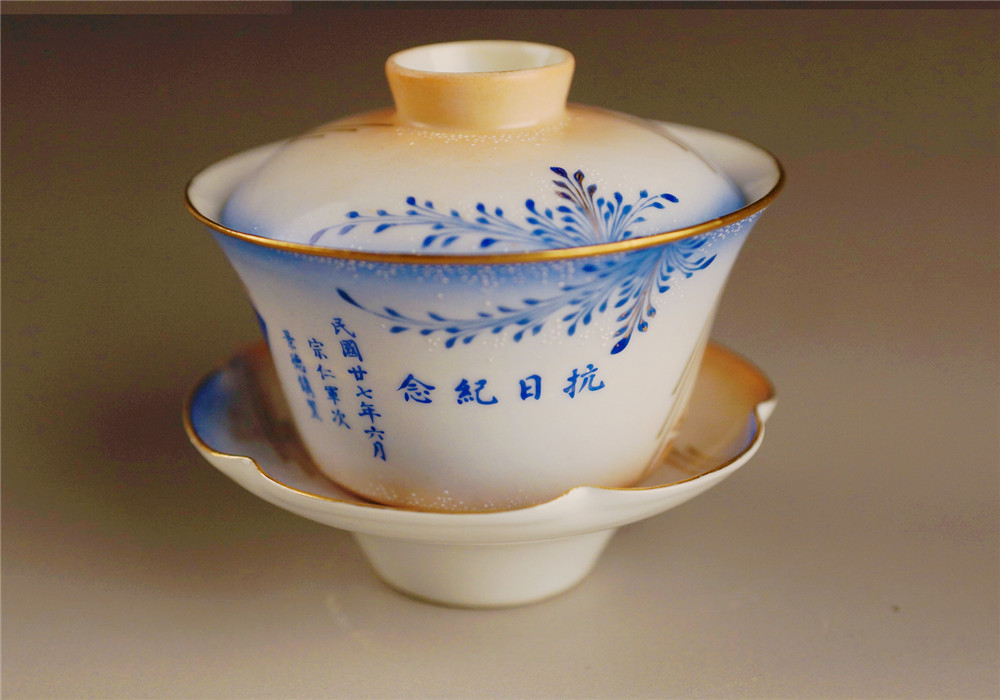 1938年6月制作的抗日纪念描金彩瓷三套杯,芜湖市博物馆收藏。本报记者 阮孟玥 摄