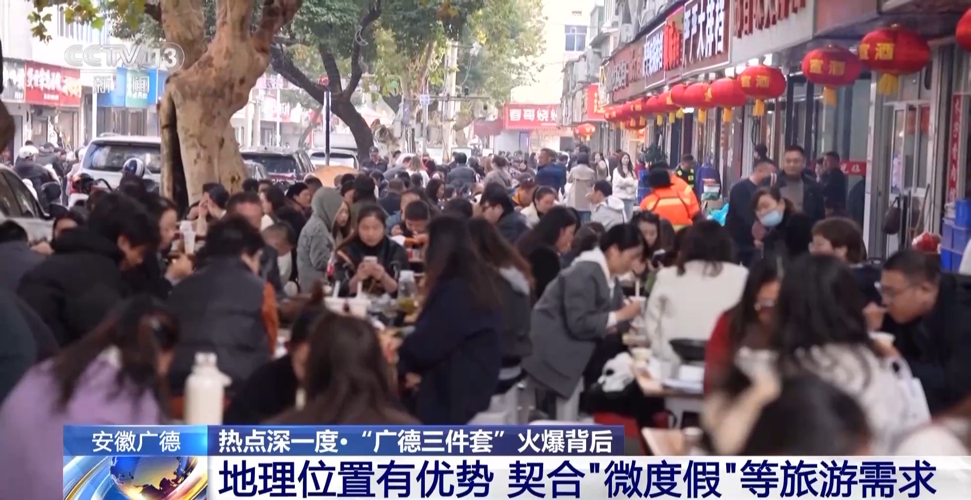 自“广德三件套”爆火后,11月24日到30日这一周,在互联网上,“广德三件套”这一话题,浏览量达到11.5亿次。过去一周,广德全域过境游客57.35万人次,同比增长33.65%。