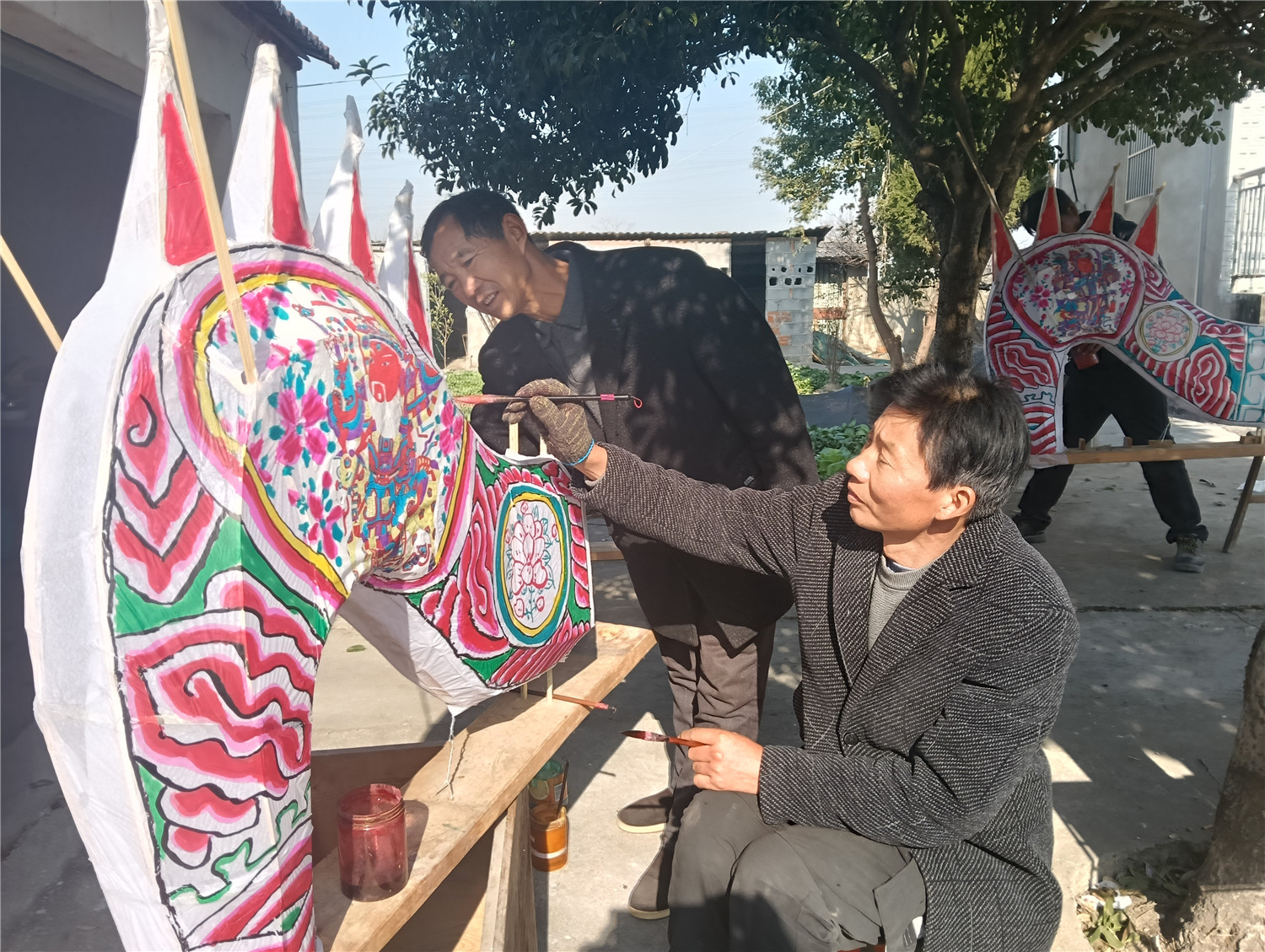 1月17日,铜陵市义安区东联镇水浒村,画师在精心描画龙头。该镇开展民俗文化活动,丰富乡村文化生活,向群众拜年送祝福。通讯员 姚长生 摄
