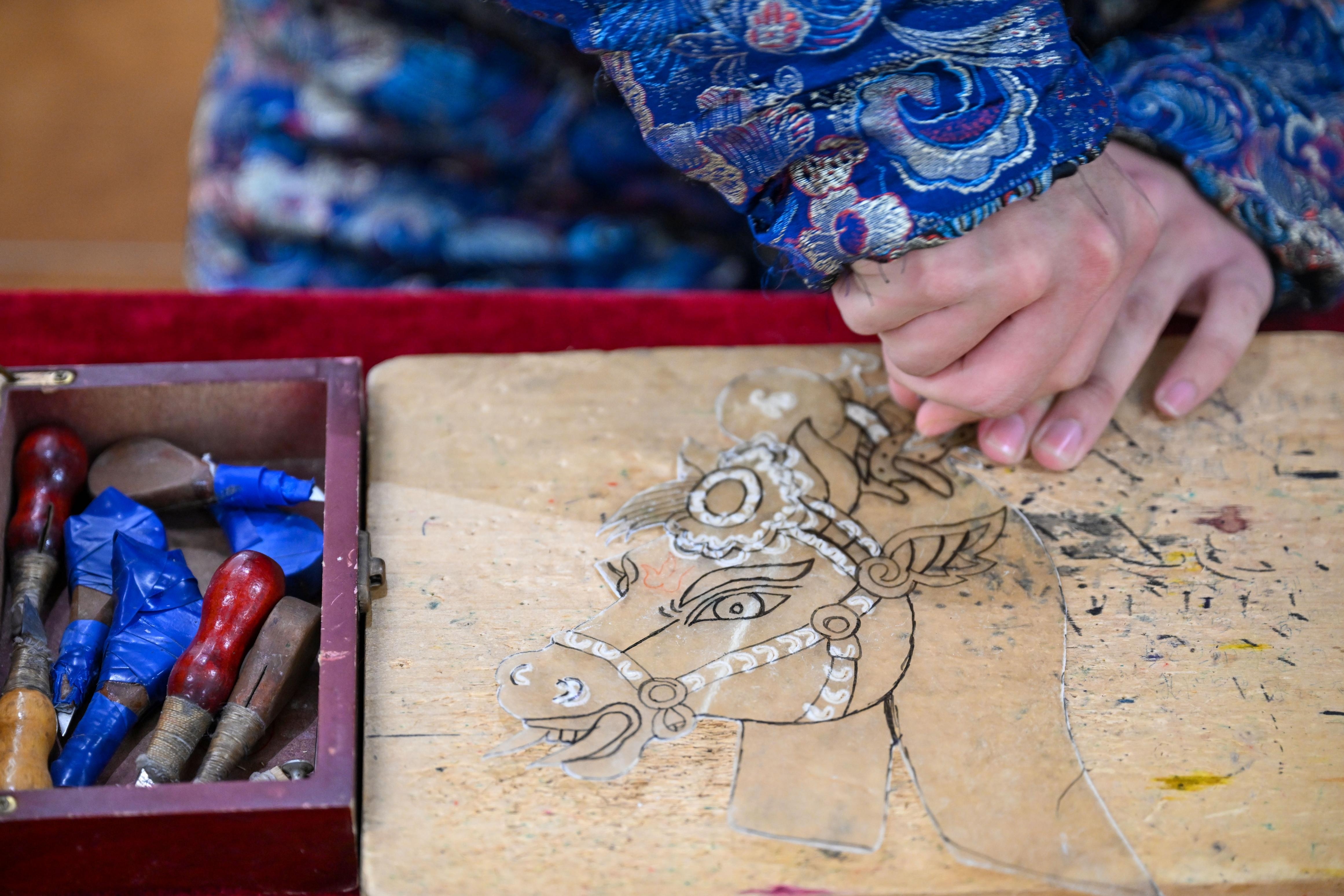 马派皮影戏的影偶皮子厚、色彩艳,做起来十分费功夫。