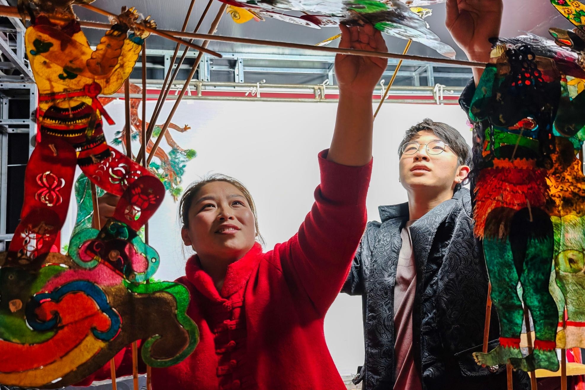 幕布轻垂,皮影翻飞。春节前夕,合肥市万科广场内,安徽省非遗代表性项目马派皮影戏表演在此上演。