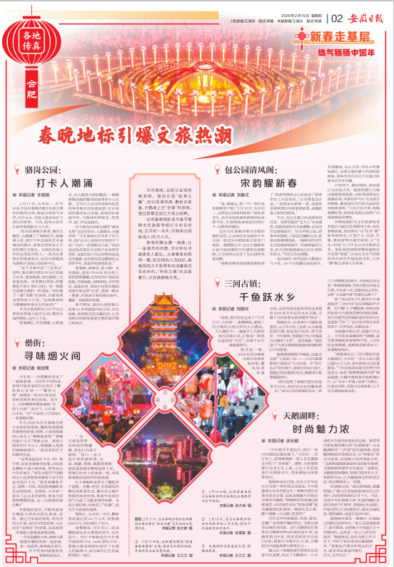 2月17日,大年初一,作为2026年总台春晚合肥分会场主舞台的骆岗公园,被装点得喜气洋洋,红红火火,迎来大批前来打卡游玩的游客。当天,骆岗公园共计接待客流超25万人次。