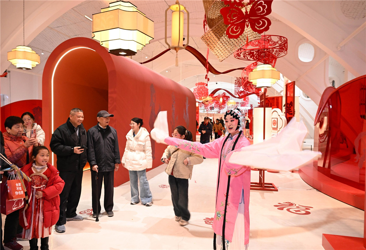 2月17日,央视春晚合肥分会场取景地之一的合柴1972文创园,戏曲演员在为游客表演黄梅戏。本报记者 张大岗 摄