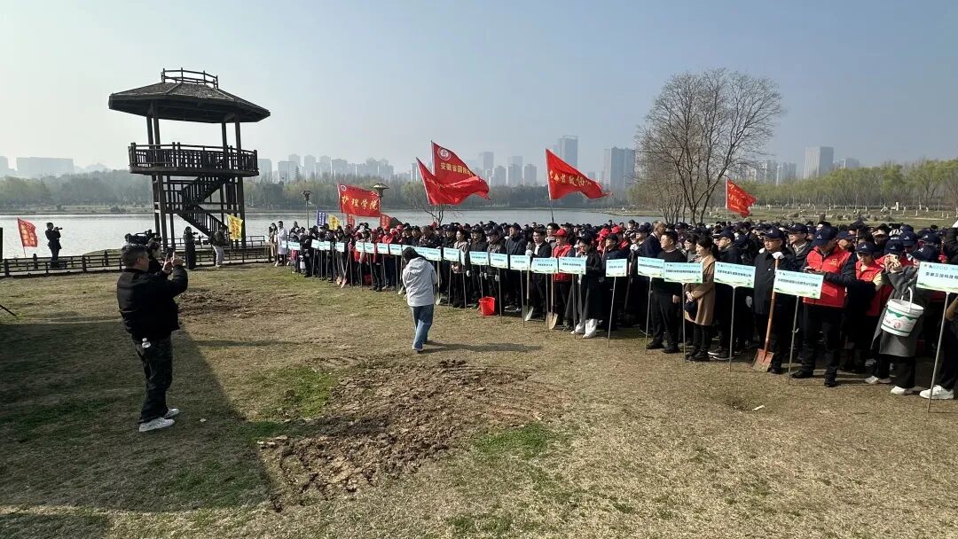 为深入学习贯彻习近平生态文明思想,引导广大青少年树立绿色环保理念、促进人与自然和谐共生,3月13日上午,第六届“保护母亲河 共创大美巢湖”安徽绿色希望工程公益植树活动在方兴社区塘西河畔举行。来自47家省直单位、爱心企业、学校及社会组织的近400名志愿者齐聚巢湖之滨,挥锹培土、提水浇灌,以实际行动为大地添绿,为生态文明建设贡献力量。